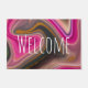 ピンクとブラックの抽象芸術と金ゴールド渦巻き ドアマット