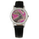 ピンクとブラックの抽象芸術と金ゴールド渦巻き 腕時計