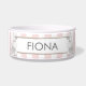 ピンクと白のを背景にしたペットボストライプール。両側にプードルが付いたバナーがあり、ペットの名前でパーソナライズできる場所がある。パリジャン風か粗末なシックな装飾に完璧な賛辞