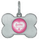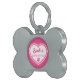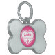 ペットの名前と電話番号をカスタマイズできるテキストエリア付きの、かわいいピンクと白のハートのデザインに、小さなピンクの肉球のプリントが付いています。