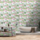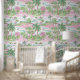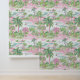 この楽しむピンクと緑のパームかわいらしの壁紙で、あなたの壁のトロピカルシーン!