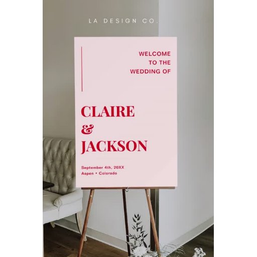 ピンクと赤のレトロ結婚のアドバイスと願い 台座サイン
