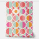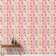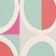 このデザインはピンク、オレンジ、青の幾何学的パターンを特徴としている。