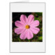 ピンクのコスモスの花の魅力的な中央に並んだ正方形のInstagramスタイル写真を持つグリーティングカード。タイトルや写真家、アーティストなど、背面の画像のリピートが小さい。このカードは使えカスタマイズる。