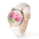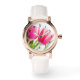 ピンクのチューリップと緑離れの写真 腕時計