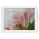 敏感な、ピンクのチューリップの開花は多くの大事な行事のために私の愛を…完成します記しました。 あなたの大事な行事に文字をカスタマイズ。 日付を加えますか、または受け手に個人化して下さい。 前部でそれはボーダーだけの色を変えます。