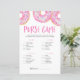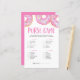 財布にリストの項目を確認しなさい。ポイントの多い人が勝者だ! |このおもしろい"財布の中の何"ゲームカードを赤ちゃんのシャワーに追加する。この赤ちゃんシャワートリビアゲームカードは、ピンクの水の色のドーナツにカラフルを振りかけるを備えている。名前、イベント、日付を追加してパーソナライズこのピンクのドーナツ財布ゲームは、任意の赤ちゃんシャワーの季節やテーマに最適である。