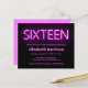 ピンクのネオンライト16thバースデーパーティーへの招待