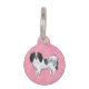 可愛い白黒のコート色のオリジナル漫画イラストレーションファレーヌは、サイズのハートのパターンを持つピンクの背景色で犬を育て違うる。反対側には、名前と電話番号のパーソナル化文字領域がある。