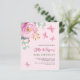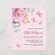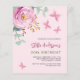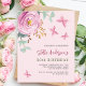 淡いピンクの背景。ピンク飾のバラと緑の水色のユーカリの緑と蝶と。名前とパーティー・詳細のパーソナライズおよび追加1枚= 1枚の招待状を印刷したエッジからエッジ