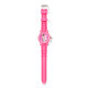 ピンクの輝く背景に翼を持つ妖精ガールのこのイラストレーションであなたの時計とおもしろいを持っている。