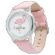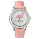 ピンクのフラミンゴとあなたの子供の名前と可愛いピンクの女の子の腕時計。