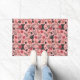 ピンクのフラミンゴの継ぎ目のないパタ葉ーンと花 ドアマット