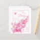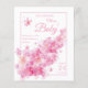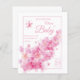 とフローラエレガント植物学予算ベビーガール赤ちゃんシャワー招待状。白い背景に、ピンクの飾水色の花で、ピンクのタイポグラフィの文字オ読ベビー。完全なイベントと詳細を前面連絡と背面に追加してパーソナライズ。