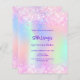 Aとガーリーキンセフェミニンーニェラパーティの招待状。前面:紫、ピンク、ミントグリーンのホログラフィックカラーの虹。飾赤面の紙吹雪名前とパーティー・詳細のパーソナライズおよび追加名前は手書文字のスタイルと紫の色の文字です。1枚= 1枚の招待状を印刷したエッジからエッジ