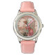 ピンクのモノグラムの花を持つ月の女性 腕時計