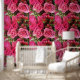 ピンクのローズイメージプリントウォールアクセントトリートメント 壁紙