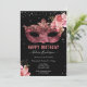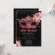 ガーリースクリプト名ファンシータイポグラフィのグリッター。ピンクのバラとフェイクグリッター縁ど。ピンクファンシーの仮装マスク。quince素晴らしお祝いすべての文字は調整可能である。美しいフローラとフェイクグリッター輝くデザイン。