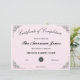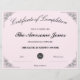 ピンクの修了証明書(ロゴ付カスタムき)