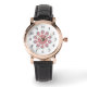 美しいピンクの円形のデザインは、女性のための正方形の顔時計。ブラックレザー時計バンド。