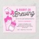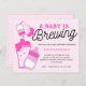 かわいいベビーはピンク色で新しい女の子のベビーを歓迎する招待を醸造している。