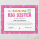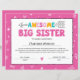 ピンクの姉妹証明書姉の証明書