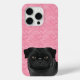 ピンクの愛のハートに黒いパグ犬の頭を閉じる ケース