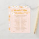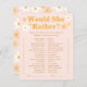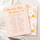 おもしろいを追加あなたの赤ちゃんシャワーパーソナライズされた開花のピンクの春ベビーは彼女はむしろゲームだろう。ベビーシャワーゲームに最適で、このゲームは春のベビーシャワーテーマを補完し、春のベビーユニークシャワーアイディアを提供する。春の赤ちゃんシャワーに最適で、4月の赤ちゃんシャワーアイディア、フローラの赤ちゃんシャワーアイディア、庭の赤ちゃんシャワーテーマ、ワイルドフラワーの赤ちゃんシャワーテーマによく合う。開花祝シャワーアイディアのベビーと、開花のベビースシャワーテーマのベビー、または3月のベビースシャワー。