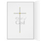 ピンクの背景に対して前のサンプル写真の代わりに子供の特別なFirst Holy Communion写真をアップロードする。カードの離れ内側には金ゴールドのアクセントの外観と銀の文字の神の子エレガントのシンプルのクロスのイメージ書がある。メッセージ離れの内容をそのまま入力するか、独自のメッセージで置き換える。オリジナルのアートワーク、写真、詩のデザイン© TamiraZDesigns.