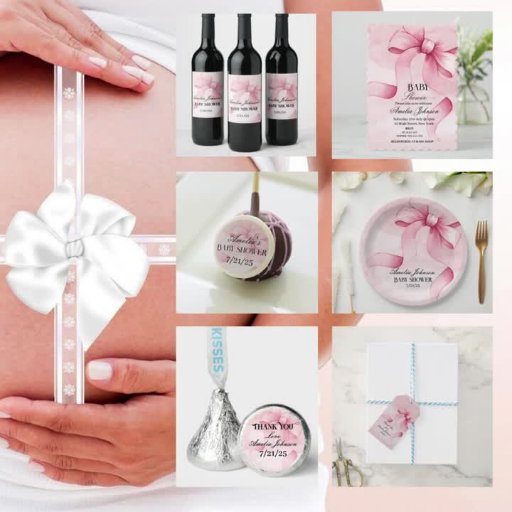 こ祝のピンクの弓をテーマにした赤ちゃんシャワーの招待でかわいらしあなたの喜びのバンドル。小文字のエレガントセリフタイポグラフィ、赤面ピンクのスクリプトレタリング、水色の弓を備えている。この招待のシンプルデザインとミニマルなテーマで赤ちゃんシャワーに理想的なガーリーお祝い。ザッカスタマイズズルの直観的なデザインツールを使用して詳細を送信しスタイリッシュて、彼らが愛する心温まる招待状!このページにリンクされたコレクションを表示するか、詳細については当社のストアを参照デザイン!
