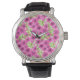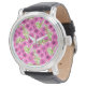 ピンクの水色のペチュニアの花柄 腕時計