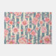 ピンクの水色の花を咲かせるストライプ花 ドアマット