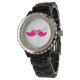 ピンクの濃い口ひげおもしろい天使の翼 腕時計