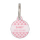 ピンクの犬の手のプリントパターンは、前面に1つの大きなピンクの犬の手のシルエット。背面には、ペットの名前と電話番号のパーソナライズ可能な文字領域がある。
