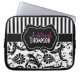 この名前入りな白黒花のダマスク織のラップトップスリーブはあなた自身の名前、イニシャル、商号、または他の文字とカスタマイズべきあなたのためのテキスト・ボックスを備えています。 カスタマイズ助けを必要としたらniteowlstudio@gmail.comに電子メールを送って下さい。