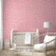 白い水玉は大きく均等に配置され、クラシックな水玉模様にモダンなタッチを加えています。鮮やかなピンクの背景がエネルギーを加え、壁紙を子供部屋に最適なものにしています