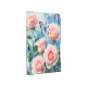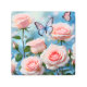 青い透明な蝶と美しい平和で魅力的な柔らかいピンクのバラの花の植物