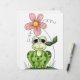 ピンク色の花を持つ可愛い笑顔のカエル。