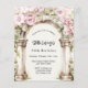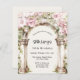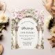 ピンクの花模様を持飾つ大きな大理石のアーチ。名前とパーティー・詳細のパーソナライズおよび追加1枚= 1枚の招待状を印刷したエッジからエッジへ。