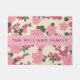 ピンクの花、花のパターン、あなたの名前 ドアマット