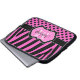 ピンクの黒いシマウマのストライプな水玉模様のラップトップの箱 ラップトップスリーブ