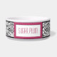 ピンクはラベルのデザインのダマスク織犬ボールをステッチしました ボウル