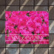 鮮やかなピンクのツツツジの花の開花の写真と様式化された文字の写真を特徴とする装飾エレガント的で歓迎の書ドーマット。素敵なフローラデザイン!屋内を使用するか、カバーされた入口領域で使用する。フォーマットのサイズを選択する。