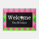 ピンクアーガイルとグリーンのゴルフウェルカムエントリー ドアマット