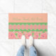 ピンクアートローズフローラアクセント付きドアマット ドアマット