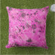 無数のピンク色の色合いとブラック、ホワイト、グレーのウィスパーのスプラッシュが混ざり合い、楽しいおもしろい枕を作る。