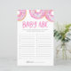 ベビーABC!アルファベットの各文字の名前を入力する。最初にゴールした人が勝つ! |このおもしろいベビーABCゲームカードをベビーシャワーに追加。この赤ちゃんシャワートリビアゲームカードは、ピンクの水の色のドーナツにカラフルを振りかけるを備えている。名前、イベント、日付を追加してパーソナライズこのピンクのドーナツベビーABCは、任意の赤ちゃんシャワーの季節やテーマに最適である。