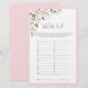 フローラのブーケモダンは、赤面のピンク、桃、白の色合いの柔らかく水の色のバラののブーケを特徴とするエレガントブライダルシャワーゲーム"結婚's A-Z"は、愛とユーカリの色合いの緑豊かな植物性のとピンクのユーカリと愛の色合いの。美しい手書き文字でアクセントを付け、柔らかいオフブラックでモダンあなたの質問をパーソナライズ。共同調整スイートの一部。詳細なコレクションはこちら: https://www.zazzle.com/collections/elegant_pink_water color_フローラ_ブライダル_shower-119520534388034363デザイ連絡ザを参照。著作権エレガント招待状、すべての権利を留保。