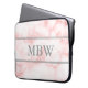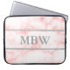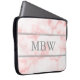 このラップトップスリーブは、受信者のモノグラムでパーソナライズできる。ラップトップスリーブはピンクエレガントの大理石フェイクデザインを有する。灰色の線が2本のイニシャルの上と下にある。