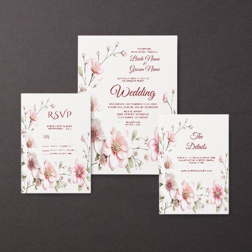 美しいエレガントピンクの白フローラ結婚式招待状あなたの紙タイプの好みを選択してください。紙タイプのオプション:シグネチャーマット紙セミグロス紙クラフト紙感じベージュ色紙リネン紙円柱状紙敷設紙白色パールチャンパーニュ金属銀